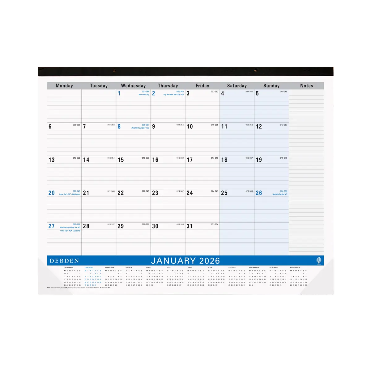 Featuring easy-to-read graphics and a clear layout, this desk pad planner allows month-to view planning, as well as providing convenient space for notes,