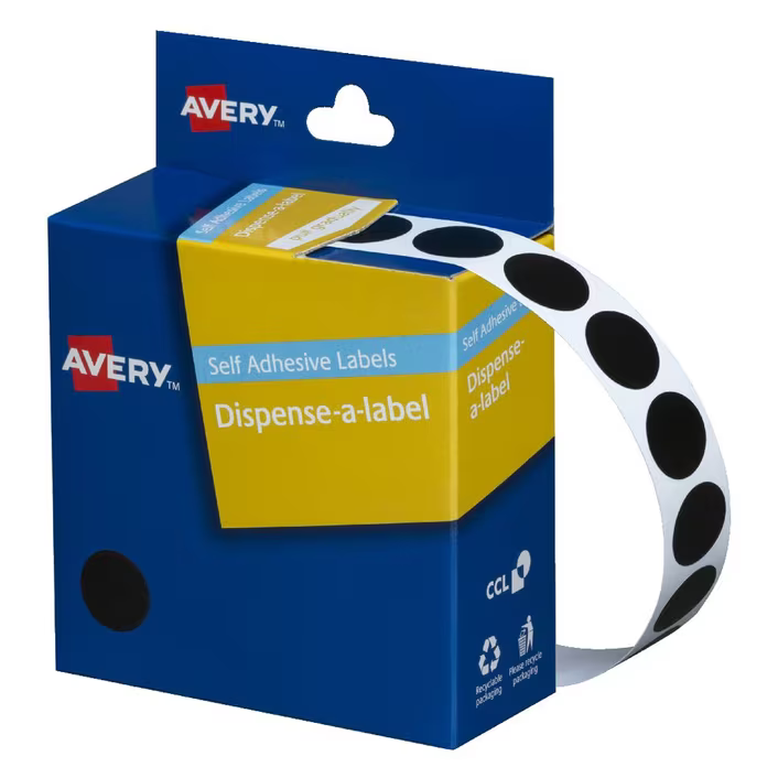 Quickly and easily label your files with this set of circular Black 14 mm Avery Dispenser Labels. An accessible dispenser pack lets you organise your files with ease.