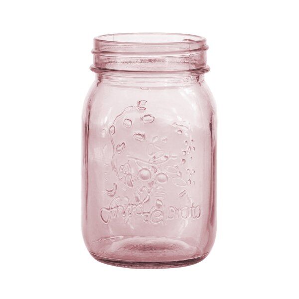 This Glass Mason Jar Large in Rose displays a raised glass botanical decoration. With a wide and stout shape, this mason jar is well-suited to small floral and candle displays with garden-style or a rustic aesthetic.