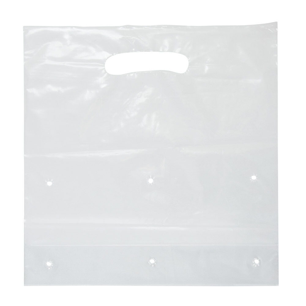 Clear LDPE with handle cutout for ease of pickup. Vented polybags allow air to circulate through, allowing oxygen in and moisture out,
